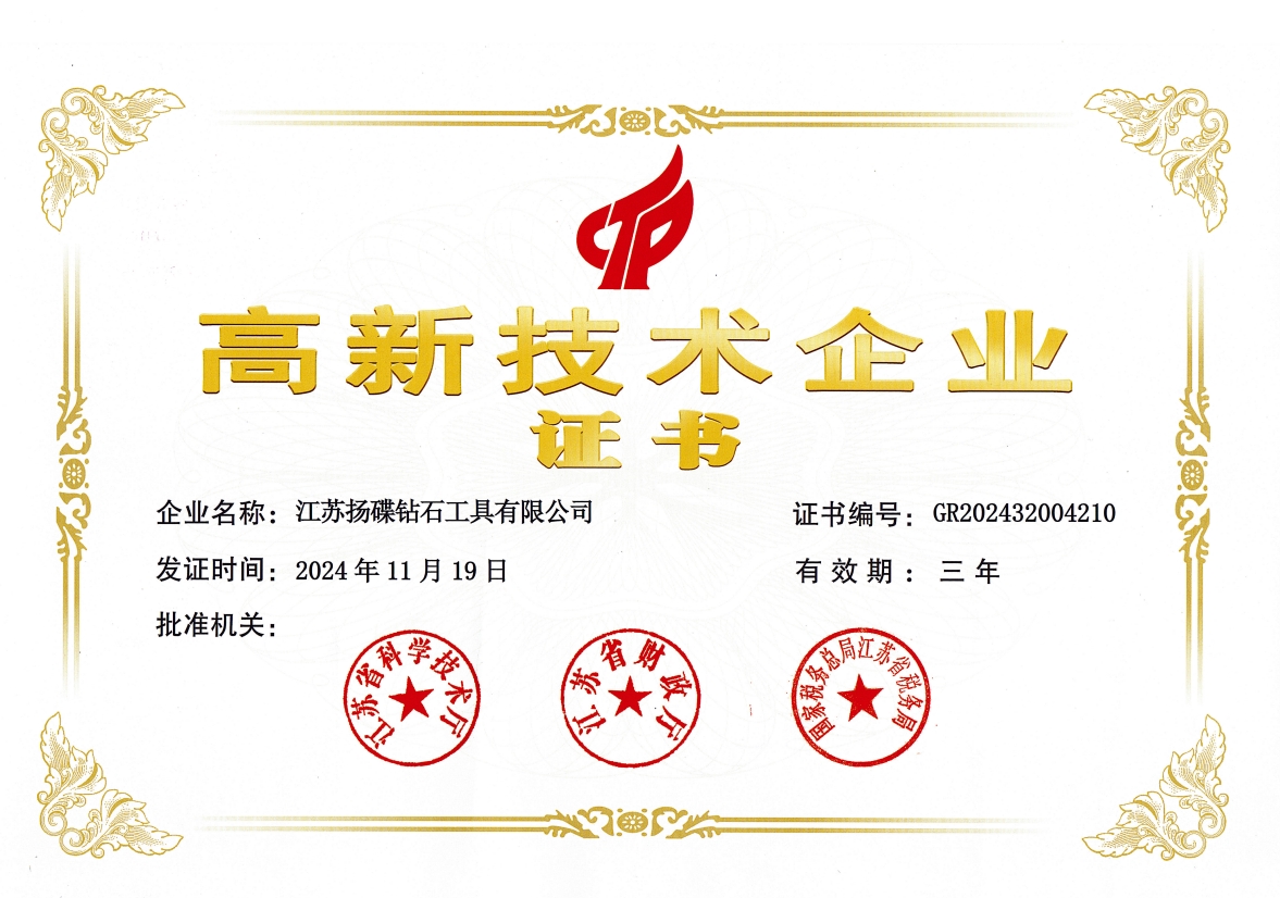 多年來,企業(yè)通過ISO9001國際質(zhì)量體系認(rèn)證,被中國中輕產(chǎn)品質(zhì)保中心授予“全國金剛石制造行業(yè)質(zhì)量放心滿意單位”,獲得江蘇省高新技術(shù)企業(yè)稱號,榮獲江蘇省小巨人稱號,變速箱PCD復(fù)合鉆鉸刀獲省高新技術(shù)產(chǎn)品等等。
